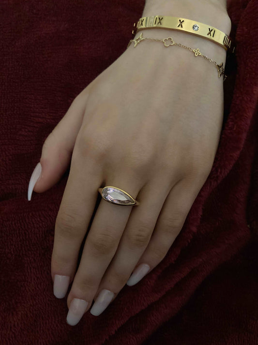 Sterling Silver 925 Iced Gold Oval Diamonté Ring