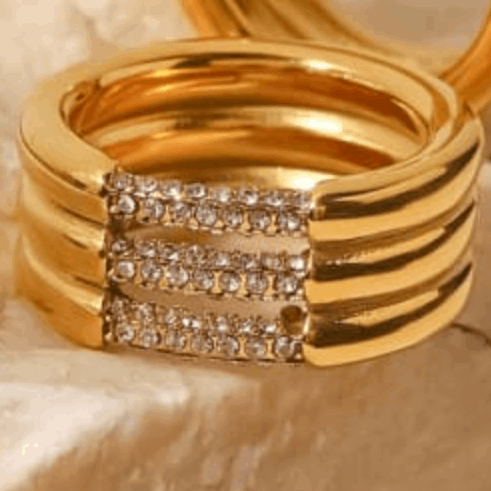 Sterling Silver 925 Iced Gold Glitter Chain Ring