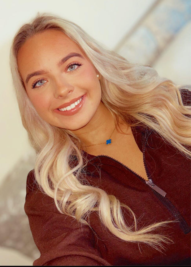 Gold Plated Stainless Steel Blue and Gold Clover Necklace